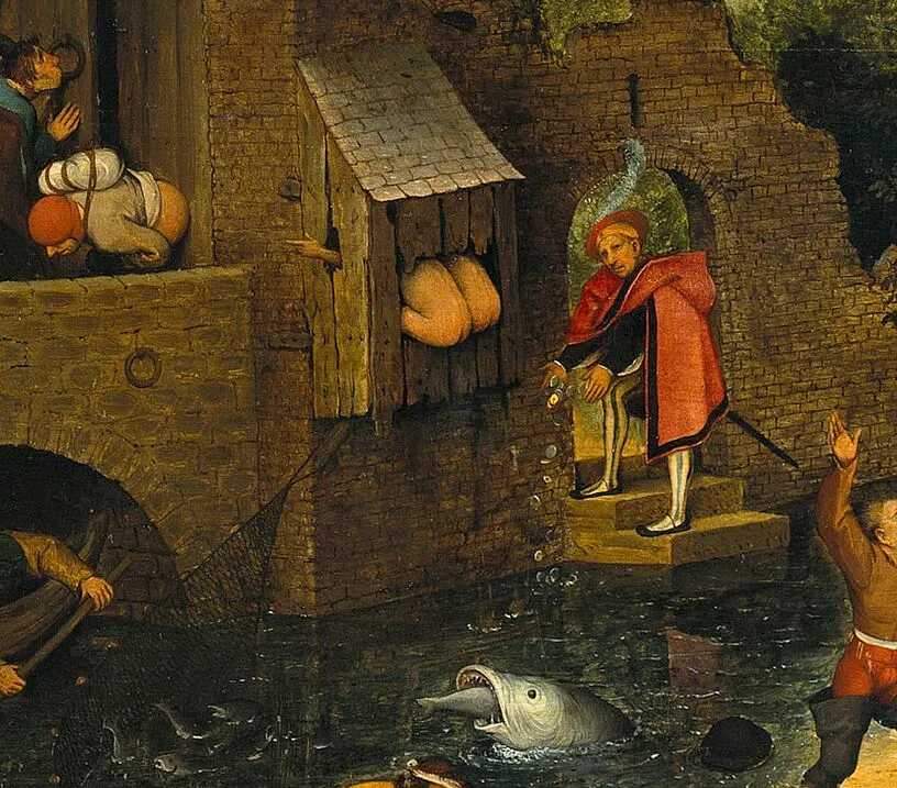 Kylantys viduramžių Europos miestai labai rūpinosi švara. Už nusilengvinimą mieste būdavo baudžiama didelėmis baudomis. Nei viešųjų tualetų, nei pastatomų lauko būdelių ar kilnojamų tualetų tuomet dar nebuvo išrasta. Todėl problema būdavo sprendžiama originaliu būdu. Apsirengę ilgais, palapinę primenančiais apsiaustais ir nešini dideliais kibirais po miestą vaikščiodavo vyrai ir moterys – gyvieji tualetai. Istoriniai šaltiniai liudija, kad pirkliai, negalintys palikti savo prekių, noriai naudodavosi šia paslauga. Tiesiog atsitūpdavo ant kibiro po tuo apsiaustu ir atlikdavo savo reikalą.