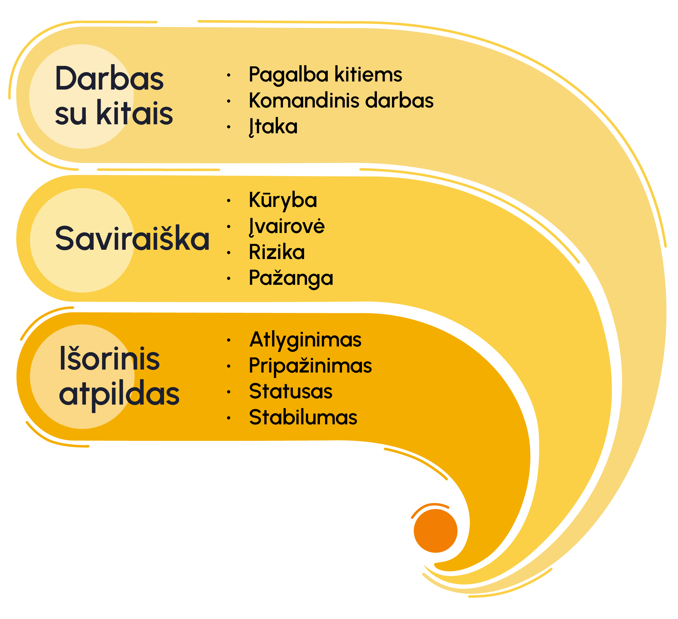 Kiekvieno žmogaus unikalus karjeros vertybių rinkinys lemia jo su karjera susijusius sprendimus ir pasitenkinimą atliekamomis veiklomis bei karjeros eiga. Savo karjeros vertybes nustatysite atlikdami skaitmeninę užduotį „Karjeros vertybės“.