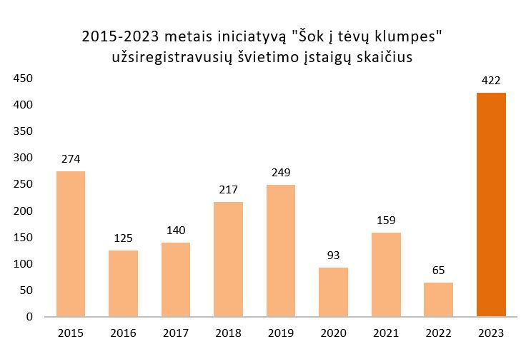 Lietuvos neformaliojo švietimo agentūra (LINEŠA) š. m. balandžio–birželio mėn. devintus metus iš eilės organizavo visuotinę atvirų durų dieną tėvų darbovietėse „Šok į tėvų klumpes 2023“ ir visas šalies bendrojo ugdymo mokyklas kvietė prisijungti prie šios nacionalinės profesinio veiklinimo iniciatyvos.