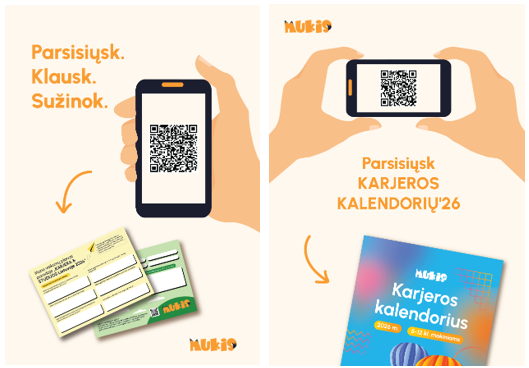 Kaip ir pernai metais vyresniųjų klasių mokiniams ir jų tėvams, karjeros specialistams ir kitiems pedagogams, taip pat visiems karjeros kelią besirenkantiems ar keičiantiems žmonėms MUKIS stende atsakysime į klausimus, kurie kyla kiekvienam, svarstančiam apie savo profesinį kelią. Taip pat papasakosime apie MUKIS atmintinę-veiksmų planą sėkmingam dalyvavimui šių metų renginyje ir ką tik išleistą 2026 m. karjeros kalendorių bei pasiūlysime keletą staigmenų – galimybę susikurti akimirkos nuotaiką fotobūdelėje su MUKIS rėmeliu ir mobiliajam įrenginiui skirtas motyvacines užsklandas.