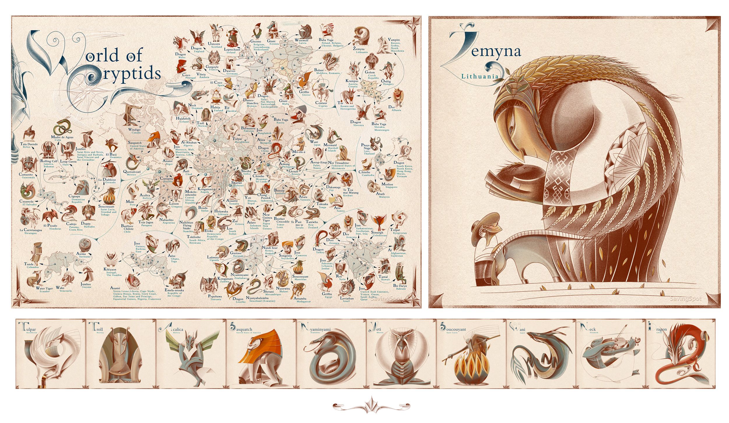 Kriptidų pasaulis (World of Cryptids). Dizaino studija NeoMam Studios (JK), kūrybinės grupės vadovas Povilas Daknys, užsakovas SavingSpot (USA) (2020 m.)
